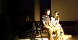 “The Cliffside” tells the story of a newlywed couple starting a new life in an apartment of their own. In pregnancy, the wife came across a news report of an English family, shown to the audience in the form of video projection. The presumed images of the family is based on the true story of the Putticks, where the parents Neil and Kazumi Puttick jumped off the East Sussex cliffs after their beloved 5-year-old son Sam died of meningitis few days ago. The storylines of both families coincide as the newlyweds encounter a miscarriage. To find closure and consolation, the couple decides to visit the East Sussex cliffs. On the precipice, as the wife laid down a teddy bear, a tie, and a necklace, she quietly sobbed in the arms of her husband.